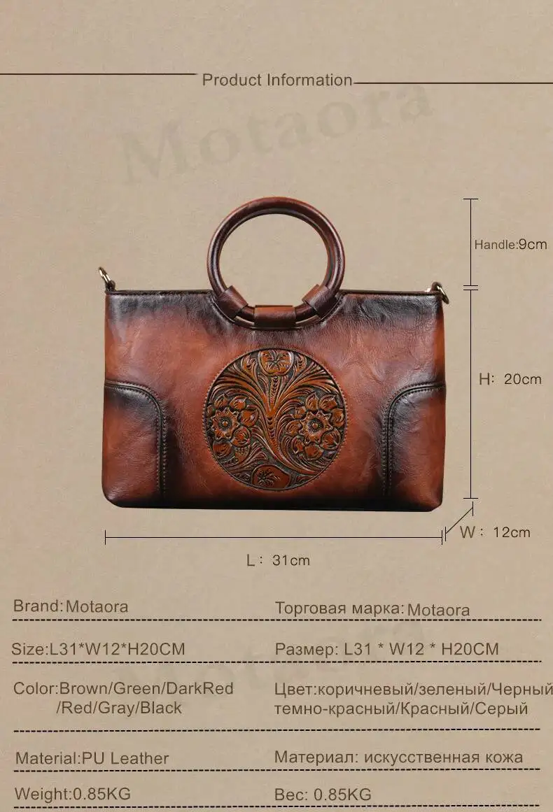 New High Quality Leather Women Handbag Retro Handmade Embossed Shoulder Bag For Women Large Capacity Female Messenger Bags